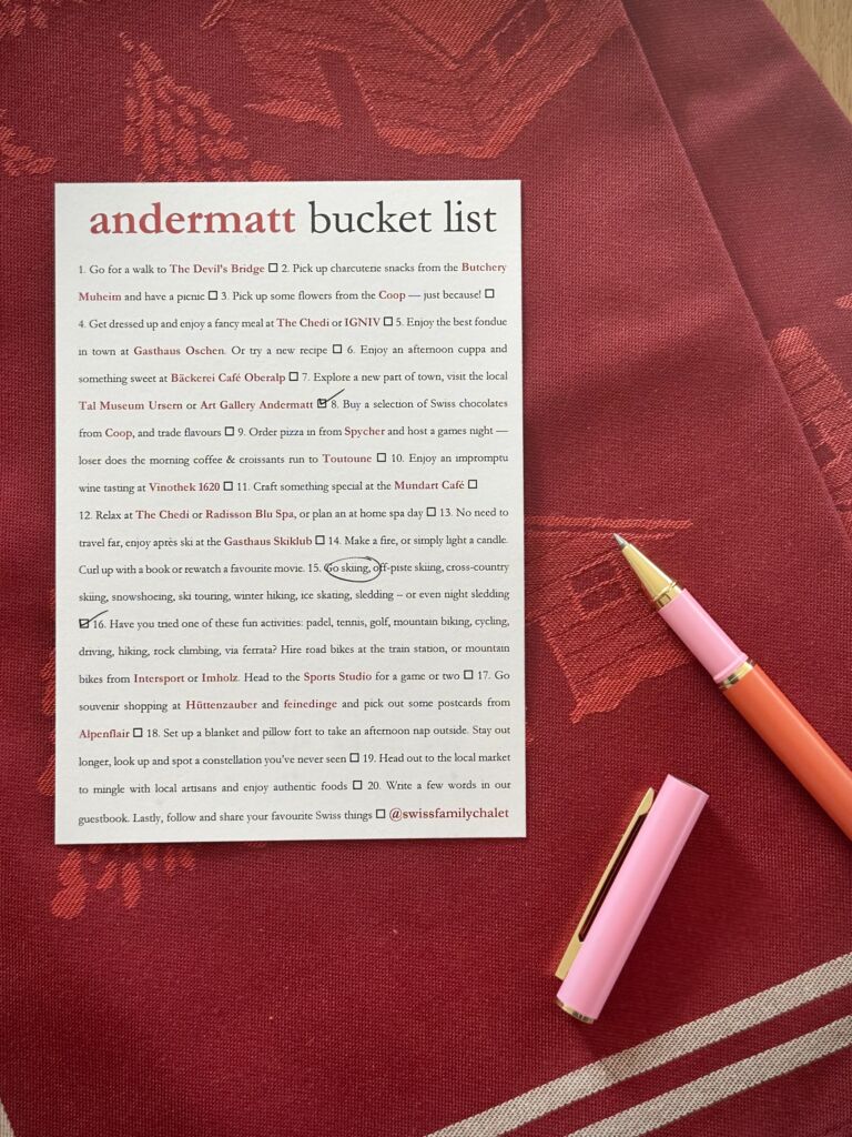 Andermatt Bucket List Living/Décor Skills Posted on March 4, 2026 ← Tussie Mussies Oatmeal Raisin Cookies →